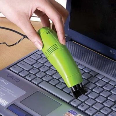 Computer Mini Vacuum یا همون جارو USB. با کمک این جارو کوچیک می تونید گرد و غبار بین کلید های کیبورد یا منافذ خاک گرفته کامپیوتر و یا مانیتور رو تمیز کنید. از اون جایی که بدون باتری و با کابل USB کار میکنه خیلی انتظار مکش قوی نداشته باشید چون فقط برای جمع آوری گرد و غبار مناسبه. دو تا سری متفاوت هم داره که یکیش از پلاستیک نرم و انعطاف پذیره تا به راحتی جاهایی مثل بین کلید های کیبورد رو تمیز کنه و سری دیگه هم که دارای برس هست می تونه به جمع آوری تکه های بزرگتر کمک کنه.