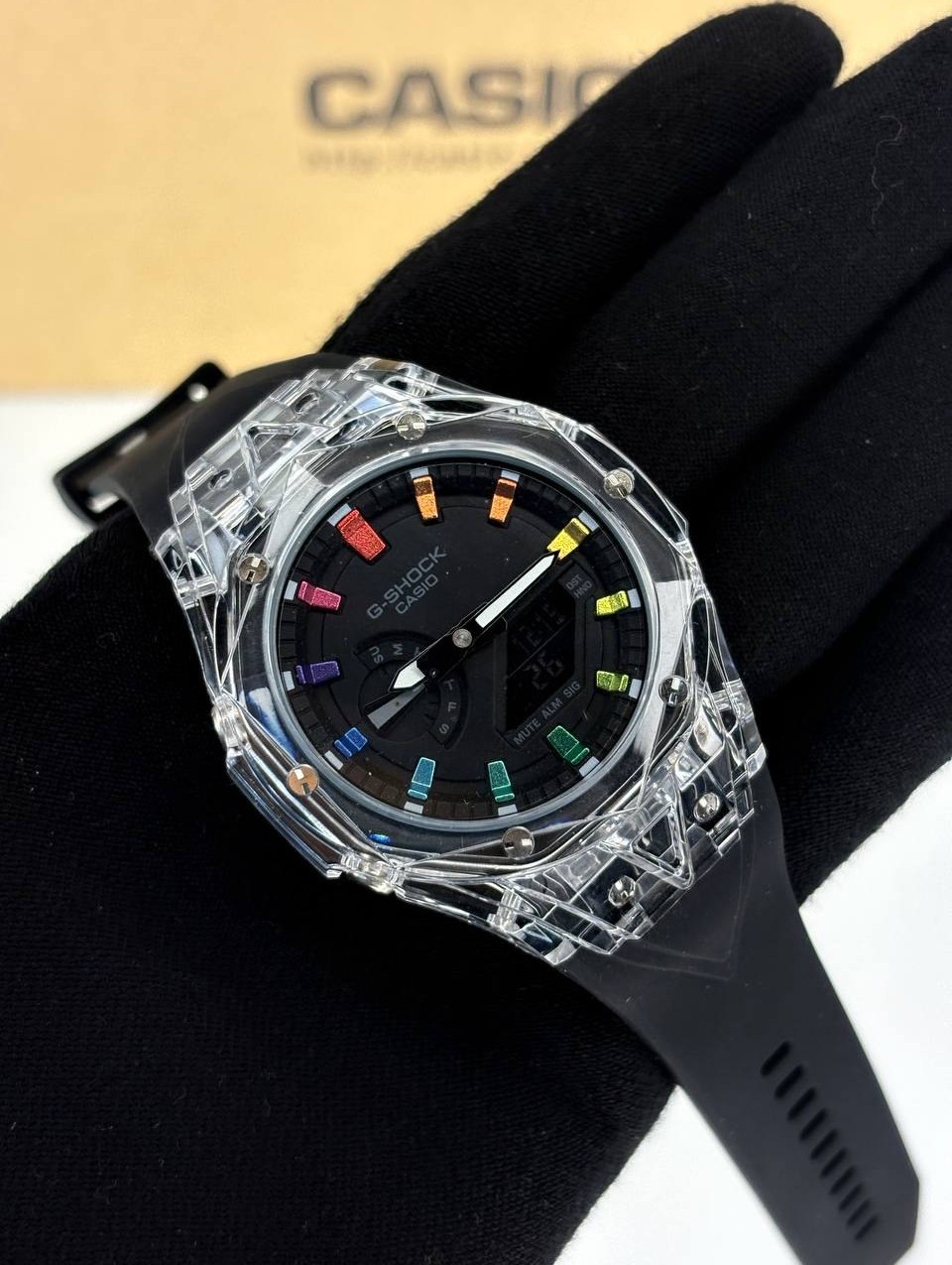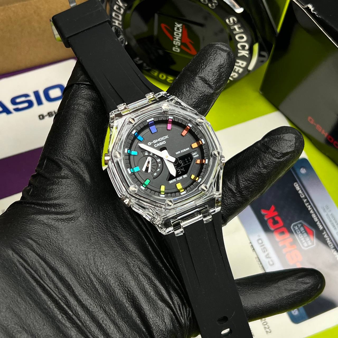 یکی از بهترین ساعت هایی که کمپانی کاسیو تولید میکند و از زمانی که ساعتهای کالکشن جی شاک به بازار معرفی شد ساعت جی شاک مدل GA2100 می باشد، کاسیو برای بار دیگر کاربران خود را به چالش کشید. مدل های جی شاک ، با ظاهر و طراحی مقاوم و منحصر به فرد خود، به محبوبیت بین المللی در بین جوانان رسید. ساعتهایی با قدرت ضربهپذیری بالا، مقاومت بالا در برابر آب و ضربات محکم که توانست نظر بسیاری از افراد را به خود جلب کند. ساعت مچی جی شاک دارای بند رابر مشکی خاص وموتور باکیفیت ژاپن وبدنه استیل وقاب شیشه ای جذاب است که بهترین انتخاب افراد خاص پسند می باشد.
