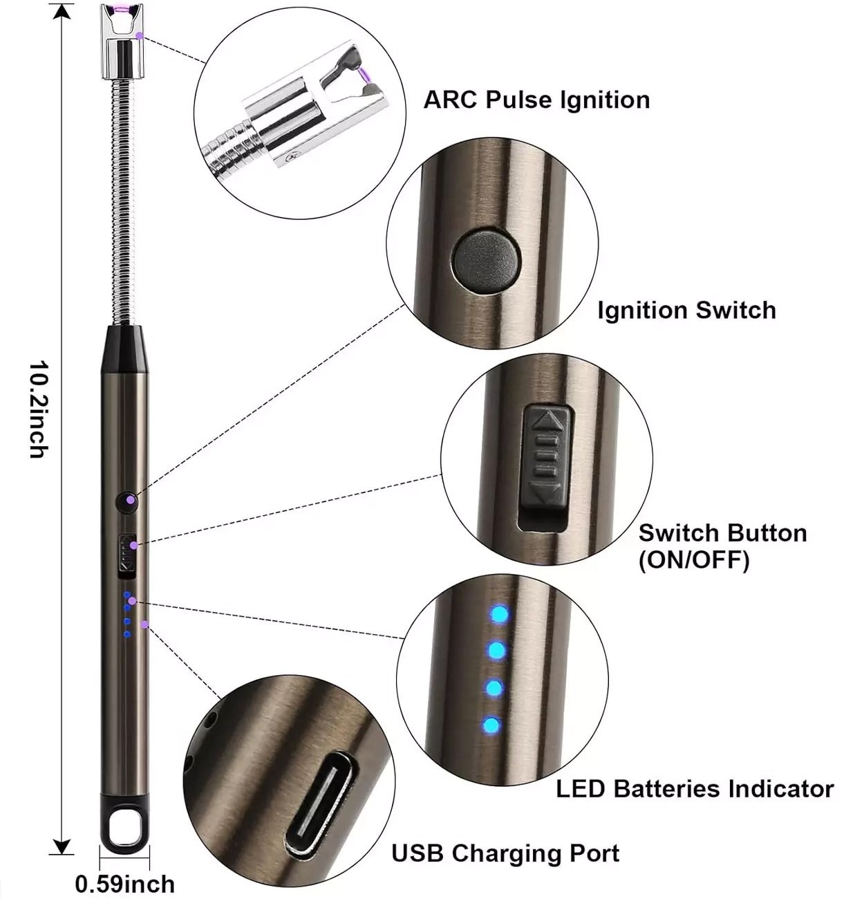 بدنهی این فندک از استیل بادوام ساخته شده است که علاوه بر مقاومت بالا، ظاهری شیک و مدرن نیز دارد. سری قابل چرخش 360 درجهای آن، استفاده از فندک را در زوایای مختلف بسیار آسان کرده و باعث افزایش راحتی کاربر میشود. این ویژگی بهخصوص در هنگام روشن کردن شمع، اجاق، باربیکیو و حتی آتش در طبیعت، بسیار کاربردی خواهد بود.