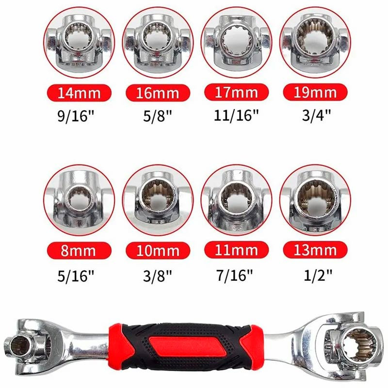 آچار همه کاره تایگر، ابزاری کارآمد و پرکاربرد است که برای انجام مجموعهای از کارها در خانه و خودرو طراحی شده است. این ابزار با ویژگیهای منحصر به فرد خود، جایگاه ویژهای در جعبه ابزار هر فردی خواهد داشت. بدنه این آچار از استیل مقاوم و ضد زنگ ساخته شده که تضمین کننده طول عمر بالا و مقاومت در برابر شرایط مختلف است. دسته لاستیکی ضد لغزش نیز راحتی و ایمنی استفاده از این ابزار را افزایش میدهد و مانع از سر خوردن آن در دست میشود.یکی از ویژگیهای بارز آچار همه کاره تایگر، دارا بودن ۸ سری قابل چرخش ۳۶۰ درجه با اندازههای مختلف (19x17x16x14x13x11x10 میلیمتر) است.