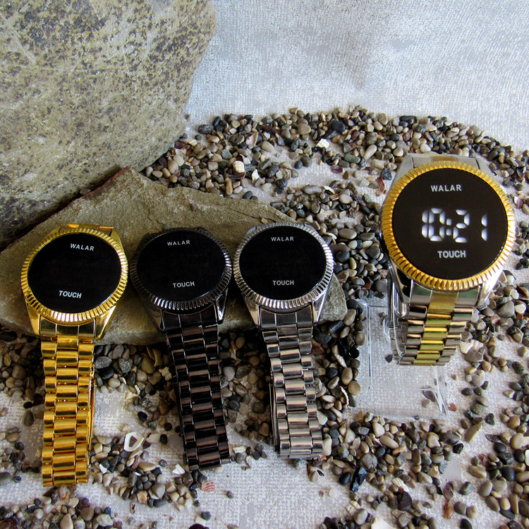 ساعت لاکچری WALAR جزو پرفروشترین برندهای ساعت مچی میانرده در بازار جهانی است. استفاده از موتورهای و متریال باکیفیت تضمین کیفیت خوب محصولات این برند را به دنبال دارد. طراحی ساعتهای این برند توسط واحد اختصاصی این شرکت انجام میشود و از این رو شاهد طراحیهای بسیار متنوع، اختصاصی و مورد پسند همه اقشار جامعه هستیم. یکی از جدیدترین و جذاب ترین مدلهای این برند مدل ساعت صفحه لمسی لاکچری WALAR TOUCH می باشد که با توجه به طراحی خاص و بی نظیر و همچنین صفحه لمسی خود نظر هر بیننده ایی را به خود جلب میکند. این ساعت دارای نمایشگار ساعت، تاریخ و سال هست و همراه با جعبه چوبی شکیل در 4 رنگ نقره ای، مشکی، طلایی و دو رنگ (طلایی و نقره ای) عرضه یم شود که هنگام ثبت سفارش می توانید رنگ مورد نظر را انتخاب کنید.